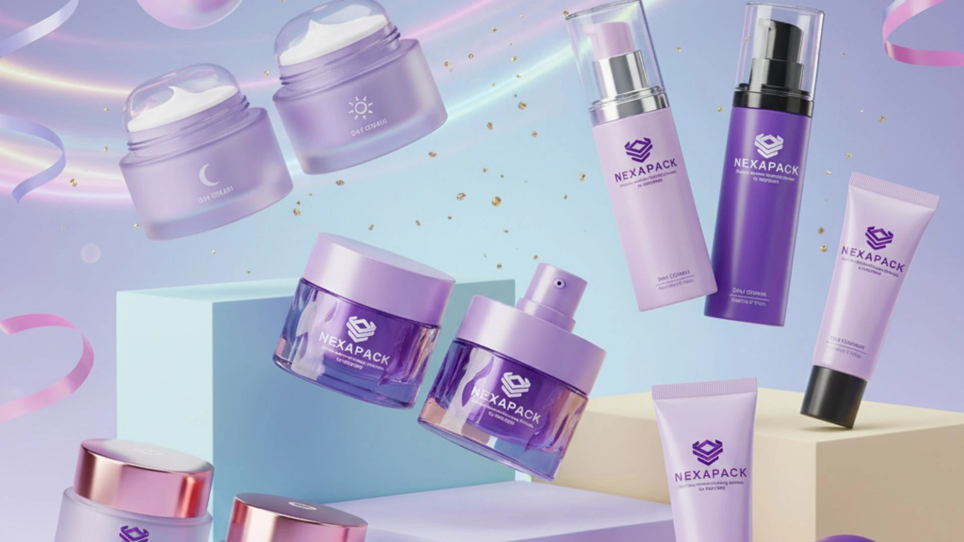 Nexapack menyediakan berbagai jenis kemasan seperti jar, botol, airless pump, tube, dan botol kaca premium yang cocok untuk day cream maupun night cream. Desainnya elegan, fungsional, dan bisa disesuaikan dengan identitas merek (custom branding).